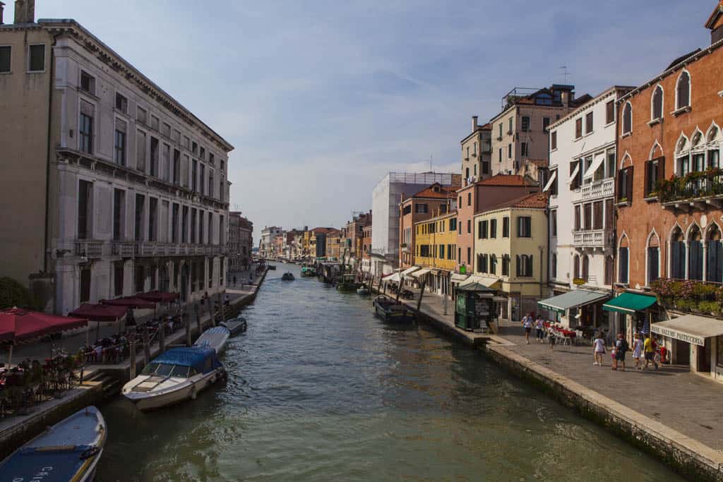 Uscendo, si raggiunge il vicino Campo dei Mori per dirigerci al famoso Ghetto ebraico, il più antico del mondo, zona ricca di storia che io personalmente amo molto. Andando verso la stazione, raggiungiamo il ponte degli Scalzi attraversato il quale giungiamo nel Sestiere di Santa Croce, il più piccolo di Venezia. Camminando in un labirinto di calli, arriviamo in Campo San Giacomo dell’Orio, dove si trova la chiesa che dà il nome al campo, pochi minuti e siamo a Ca’ Pesaro, enorme edificio barocco che affaccia sul Canal Grande, antica dimora della famiglia Pesaro ed oggi museo d’Arte Moderna (vi si trova anche un dipinto di Gustav Klimt). Ora lasciamo la zona di Santa Croce e in pochi minuti siamo a Rialto.