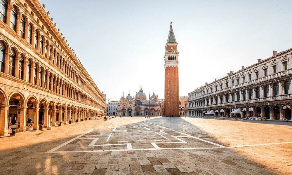 Altri importanti edifici sono la Torre dell’Orologio del 1499 con il quadrante astronomico di smalto blu, il Campanile di San Marco e la Biblioteca Marciana, splendido edificio del tardo rinascimento.